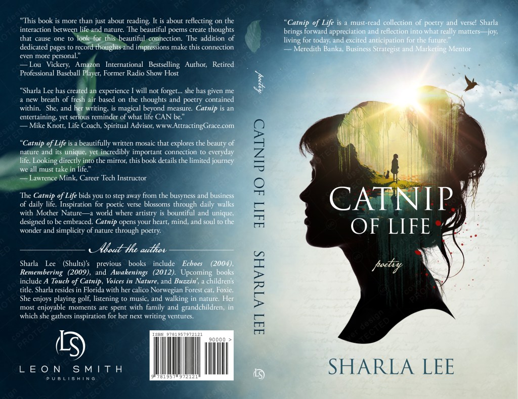 Catnip of Life is poetry, a hard sell but an easy read. The second page of the book makes the theme of this book of poetic verses very clear: Your gateway to understanding Mother Nature’s footprints by Sharla Lee. The end of Catnip of Life is YOUR beginning as you hopefully walk in the footsteps of nature with a newly found perspective.