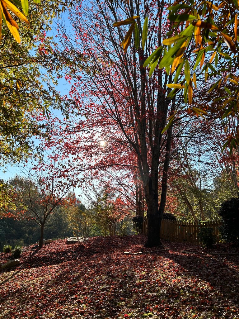 I encourage you to step outside and immerse yourself in this transitional phase. This could be as close as out your front or back door. Witness the leaves dancing in the gentle breeze, feel the cool air on your face, and let the rustle of the remaining foliage be a soothing soundtrack to your day.