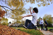 With the falling leaves comes the time for the yard rake. While no one probably LIKES to rake leaves, there is the envelopment of a very special atmosphere. As the rake moves back and forth in rhythmic motion, leaves cling to its ‘fingers’ before being deposited in a pile. The pile keeps getting bigger and bigger and bigger. All the while children laugh and giggle in anticipation of what’s coming next.